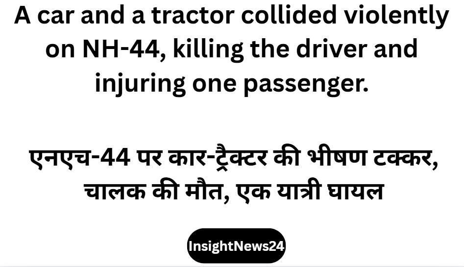कुरुक्षेत्र। राष्ट्रीय राजमार्ग-44 पर शुक्रवार को एक दर्दनाक सड़क हादसा हो गया। तेज रफ्तार में चल रही एक कार की सामने से आ रहे ट्रैक्टर से जोरदार टक्कर हो गई। हादसे में कार चालक की मौके पर ही मौत हो गई, जबकि कार में सवार दूसरा व्यक्ति गंभीर रूप से घायल हो गया।
