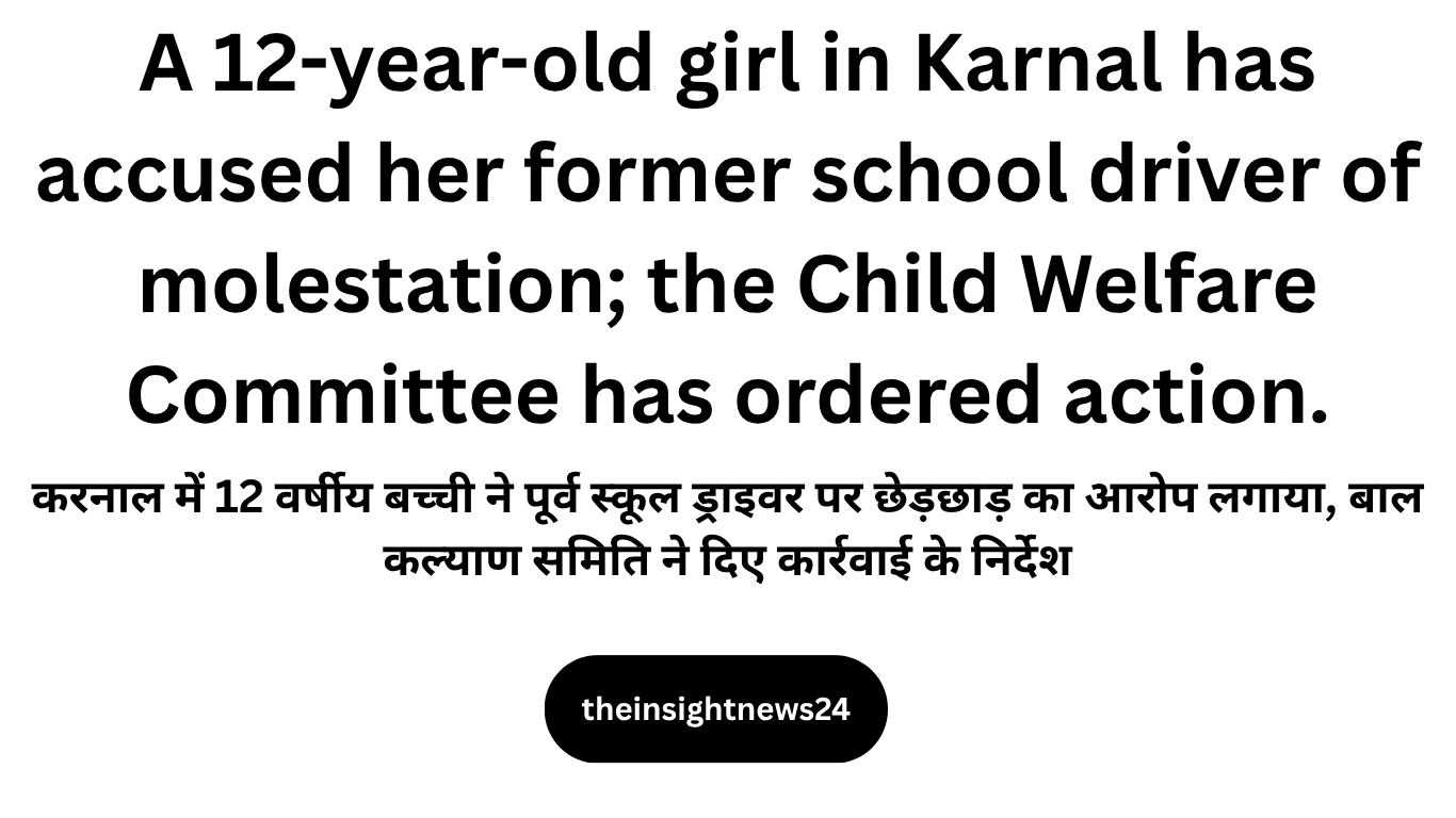 करनाल में 12 वर्षीय बच्ची ने पूर्व स्कूल ड्राइवर पर छेड़छाड़ का आरोप लगाया, बाल कल्याण समिति ने दिए कार्रवाई के निर्देश