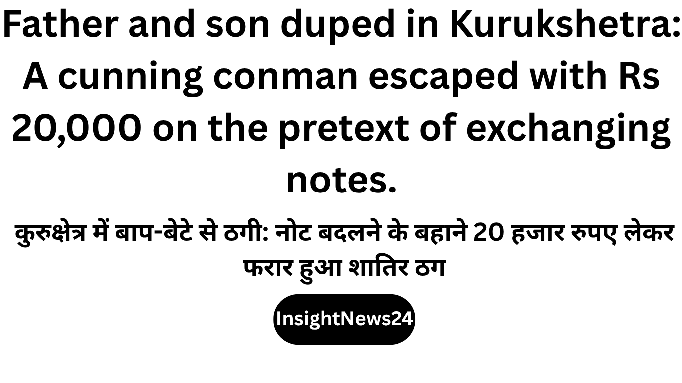 कुरुक्षेत्र। कुरुक्षेत्र में एक शातिर ठग ने बाप-बेटे को अपने धोखे का शिकार बना लिया। आरोपी खुद को मददगार दिखाते हुए उनसे नोट बदलने के बहाने करीब 20 हजार रुपए लेकर फरार हो गया। घटना की सूचना मिलने पर पुलिस ने मामला दर्ज कर जांच शुरू कर दी है।