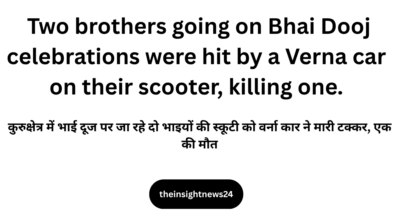 कुरुक्षेत्र में भाई दूज पर जा रहे दो भाइयों की स्कूटी को वर्ना कार ने मारी टक्कर, एक की मौत