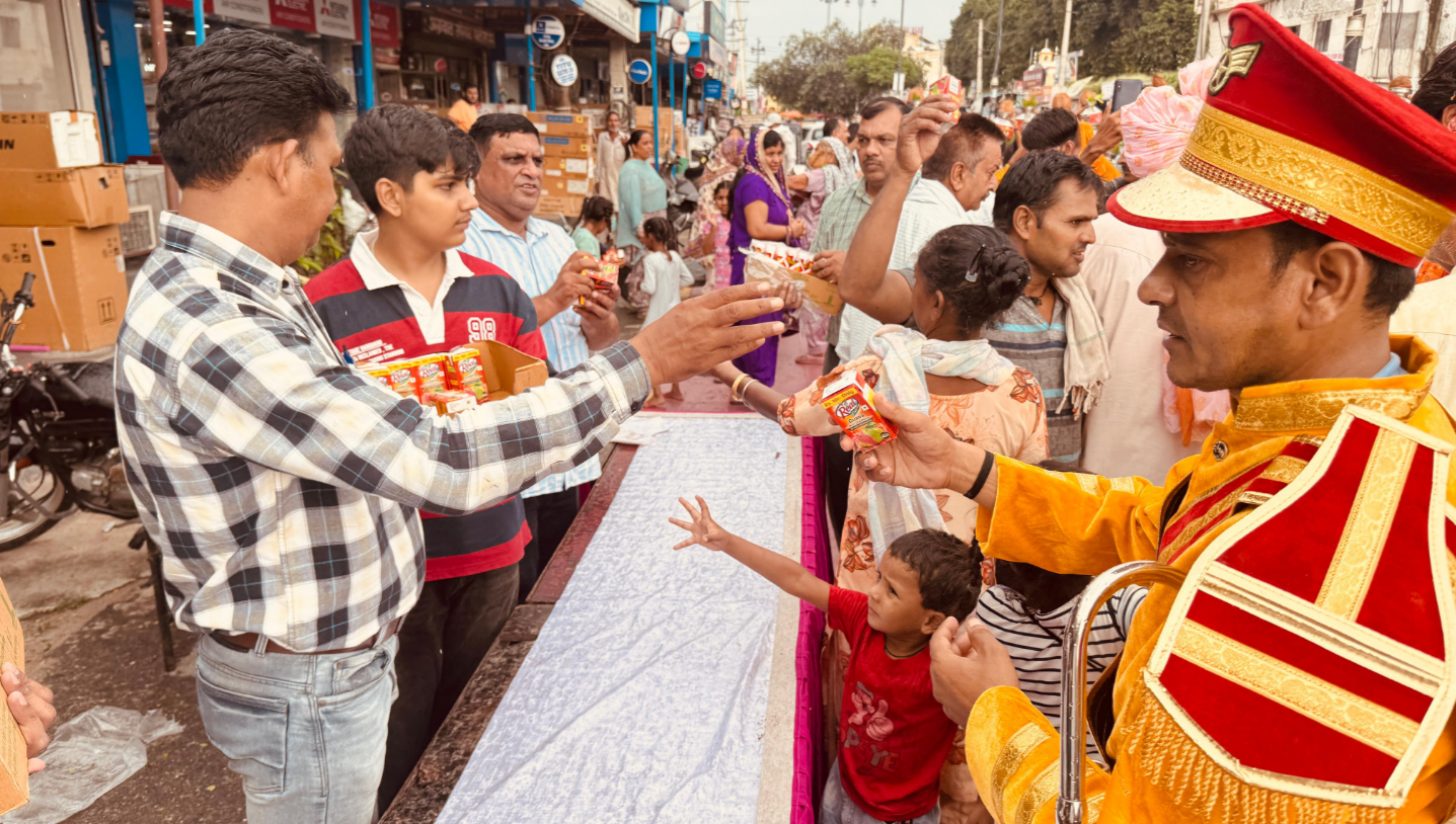 Home » लेटेस्ट न्यूज़ » कुरुक्षेत्र में वामन द्वादशी पर निकली भव्य शोभायात्रा, सेवा ट्रस्ट यूके ने लगाया रियल जूस का विशाल भंडारा
