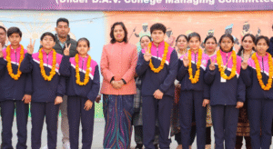 डी.ए.वी. पुलिस पब्लिक स्कूल, कुरुक्षेत्र में नेशनल गेम्स विजेताओं का भव्य अभिनंदन