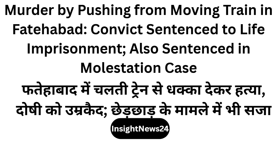 हरियाणा के फतेहाबाद जिले में चलती ट्रेन से एक महिला को धक्का देकर हत्या करने के मामले में अदालत ने आरोपी को उम्रकैद की सजा सुनाई है। साथ ही उसे छेड़छाड़ के मामले में भी दोषी ठहराते हुए अतिरिक्त सजा और जुर्माना लगाया गया है।