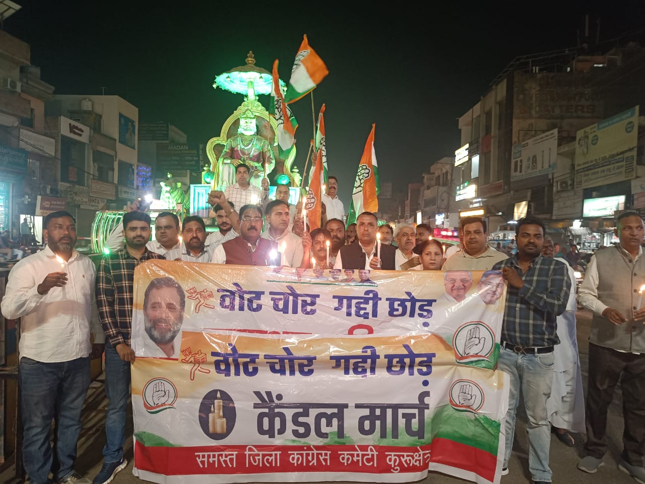 कांग्रेस कार्यकर्ताओं ने ‘वोट चोर गद्दी छोड़’ अभियान के तहत निकाला कैंडल मार्च