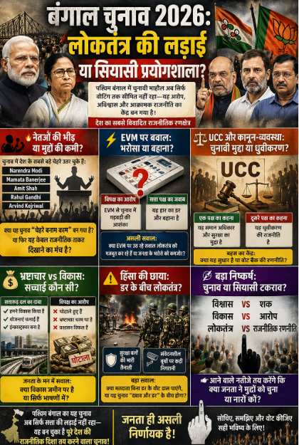 рдкрд╢реНрдЪрд┐рдо рдмрдВрдЧрд╛рд▓ рдореЗрдВ рдЪреБрдирд╛рд╡реА рдорд╛рд╣реМрд▓ рдЕрдм рд╕рд┐рд░реНрдл рд╡реЛрдЯрд┐рдВрдЧ рддрдХ рд╕реАрдорд┐рдд рдирд╣реАрдВ рд░рд╣рд╛тАФрдпрд╣ рдЖрд░реЛрдк, рдЕрд╡рд┐рд╢реНрд╡рд╛рд╕ рдФрд░ рдЖрдХреНрд░рд╛рдордХ рд░рд╛рдЬрдиреАрддрд┐ рдХрд╛ рдХреЗрдВрджреНрд░ рдмрди рдЧрдпрд╛ рд╣реИред Phase 2 рд╕реЗ рдкрд╣рд▓реЗ рдЬрд┐рд╕ рддрд░рд╣ рдХреЗ рдореБрджреНрджреЗ рдФрд░ рдШрдЯрдирд╛рдПрдВ рд╕рд╛рдордиреЗ рдЖ рд░рд╣реА рд╣реИрдВ, рдЙрдиреНрд╣реЛрдВрдиреЗ рдЗрд╕ рдЪреБрдирд╛рд╡ рдХреЛ рджреЗрд╢ рдХрд╛ рд╕рдмрд╕реЗ рд╡рд┐рд╡рд╛рджрд┐рдд рд░рд╛рдЬрдиреАрддрд┐рдХ рд░рдгрдХреНрд╖реЗрддреНрд░ рдмрдирд╛ рджрд┐рдпрд╛ рд╣реИред